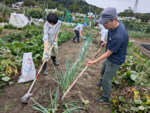 午後:実習「圃場見学、セルトレーを使った様々な野菜の播種、様々な道具を使った除草」